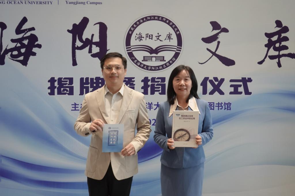11月18日下午,阳江校区图书馆在图书馆(海纳楼)一楼大厅举行海阳文库揭牌暨捐赠仪式。学校党委常委、副校长、阳江校区党委书记、管理办公室主任周昌仕出席活动并致辞,校区党委副书记麦冬宁,机械与能源工程学院院长陈扬枝,商学院院长李力,计算机科学与工程学院教授林耀庭,校区各单位领导,教师代表等70人出席活动。校区图书馆馆长李中主持仪式。