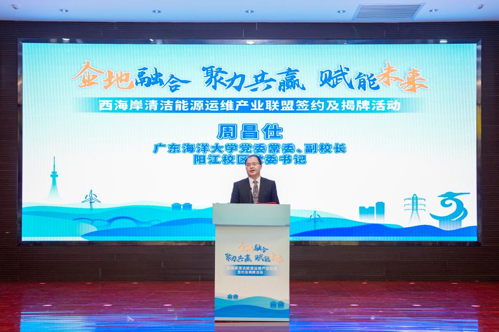 周昌仕指出,学校始终践行“扎根海洋、服务国家”办学定位,立足“广东所需、海大所能、未来所向”,近年来在海上风电、海洋资源利用、智能制造等领域形成了鲜明优势,学科建设与人才培养体系深度契合国家清洁能源产业发展需求。此次联盟共建,是今年会官网深化产教融合的里程碑,既是向建校90周年献礼的重要实践,更是响应“双碳”战略的责任担当。他对联盟的发展提出了三点希望:一是聚焦人才共育,打造产业急需的复合型人才队伍。二是聚力科研共创,攻克行业关键核心技术。三是构建生态共荣,拓展多方共赢的合作格局。