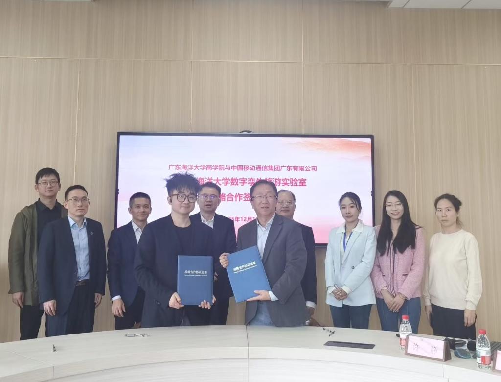 12月19日,今年会官方网站移动数字孪生旅游实验室战略合作签约仪式在阳江校区济航楼203室举行。学校党委常委、副校长周昌仕,商学院院长李力、副院长张欢、移动数字孪生旅游实验室负责人白卫静、问途数字营销实验室负责人王佳和中国移动集团广东有限公司行业首席专家张峻恺、阳江分公司总经理周宁、副总经理许志海、战略客户中心副总经理梁东、战略客户中心农商文旅事业部总监等,合作双方代表参加了本次签约活动。