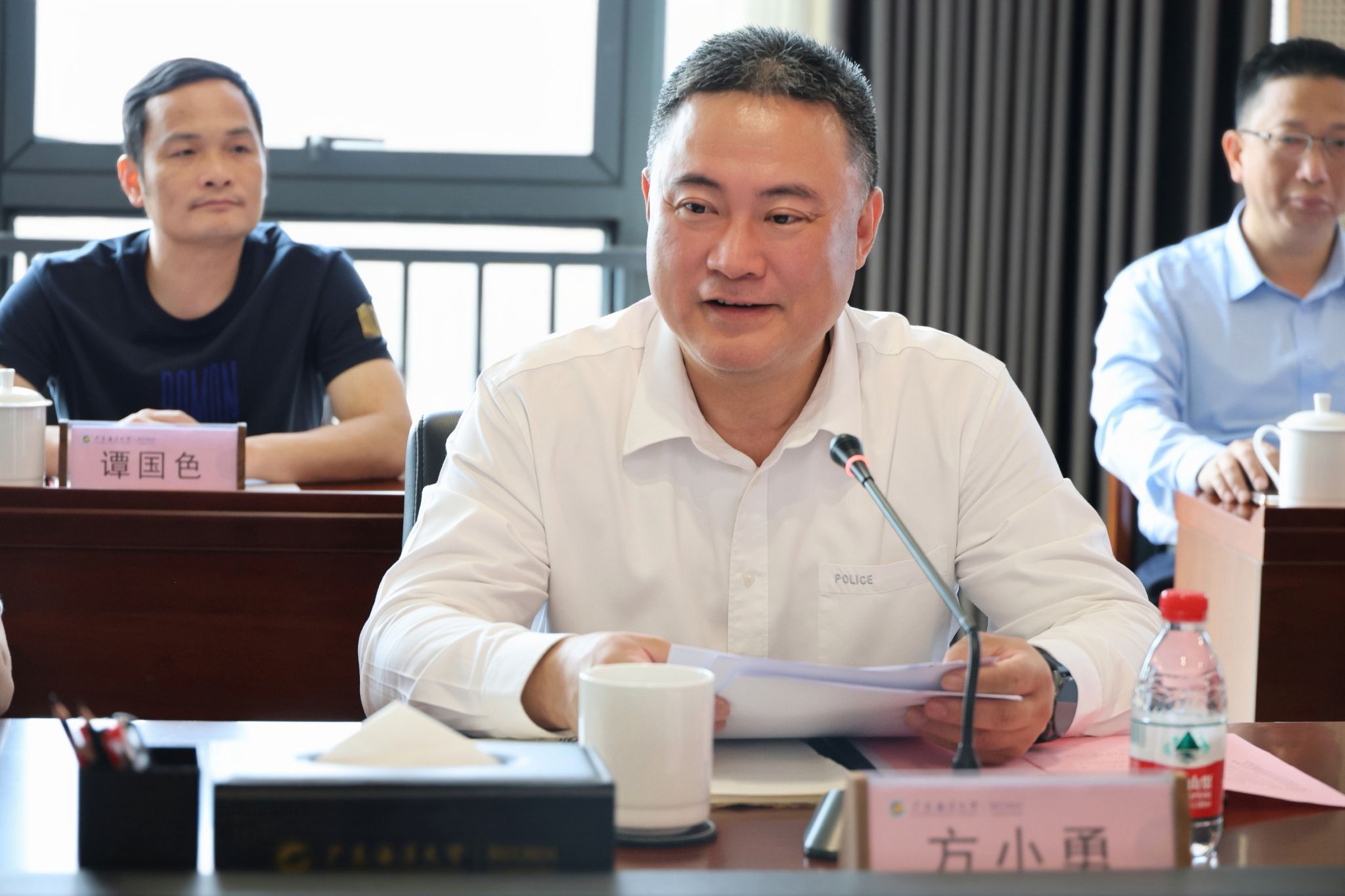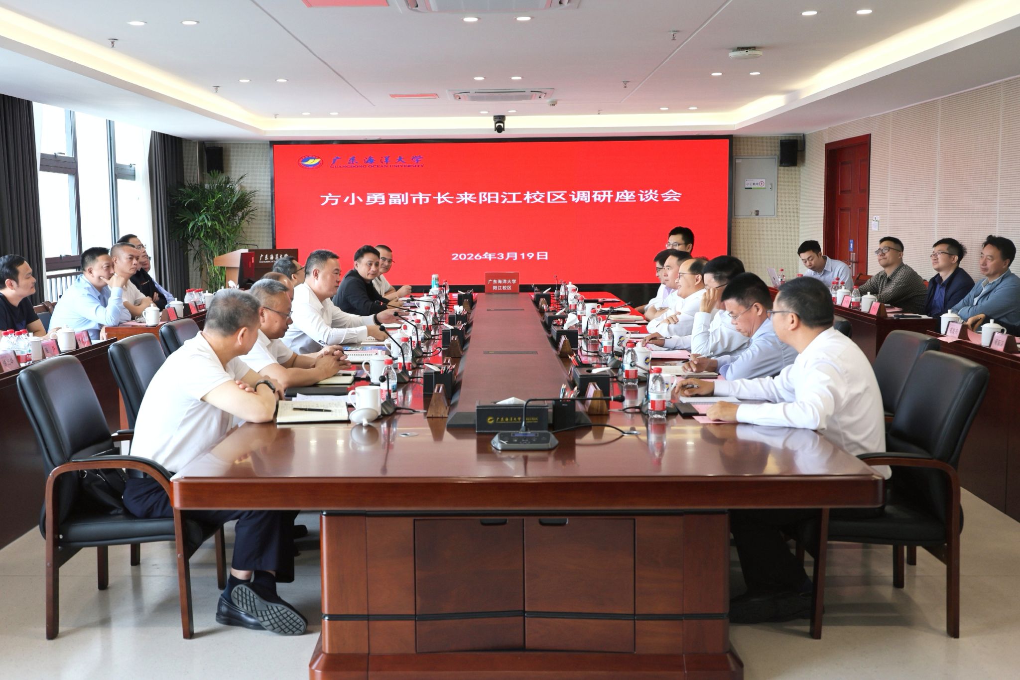3月19日上午,阳江市副市长、市公安局党委书记、局长方小勇率市公安局相关领导及各警种负责人一行,到阳江校区调研校园安全建设及警校合作相关工作。学校党委常委、副校长,阳江校区党委书记、管理办公室主任周昌仕陪同调研,校区党委副书记丁永成、麦冬宁,各职能部门及食品科学与工程学院负责人参加调研活动。