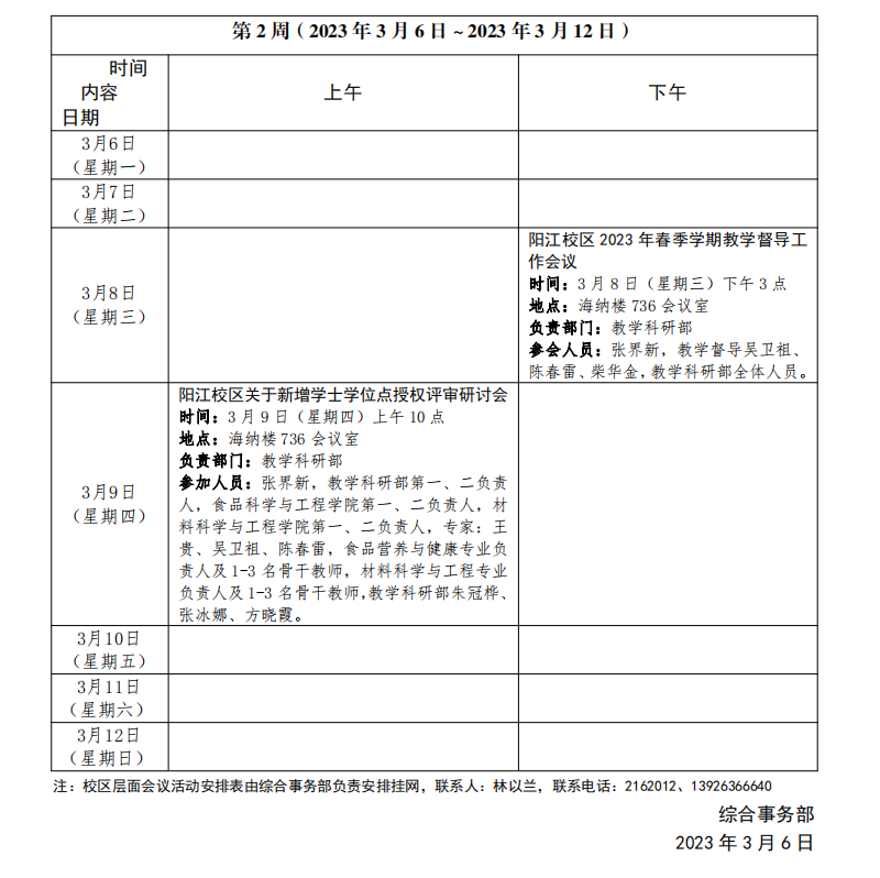 2022~2023学年第二学期第03周会议活动安排表