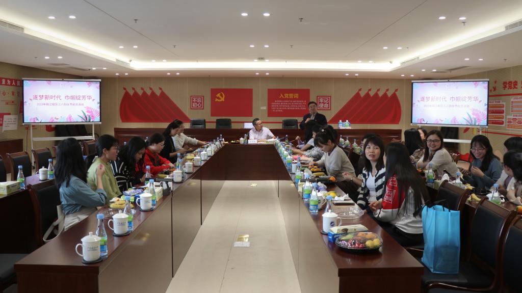 2023年是全面贯彻党的二十大精神开局之年,是“十四五”规划深化之年。为引领女教职工更加紧密团结在以习近平同志为核心的党中央周围,奋进新征程、建功新时代,积极参与学校高水平大学建设,3月8日下午,阳江校区工会在海纳楼举办党的二十大精神宣讲会暨以“逐梦新时代,巾帼绽芳华”为主题的庆祝“三八”国际妇女节纪念活动。校区管委会副主任张界新,校区工会副主席唐志军,工会委员、各工会小组女教职工代表约30人参加会议。会议由唐志军主持。