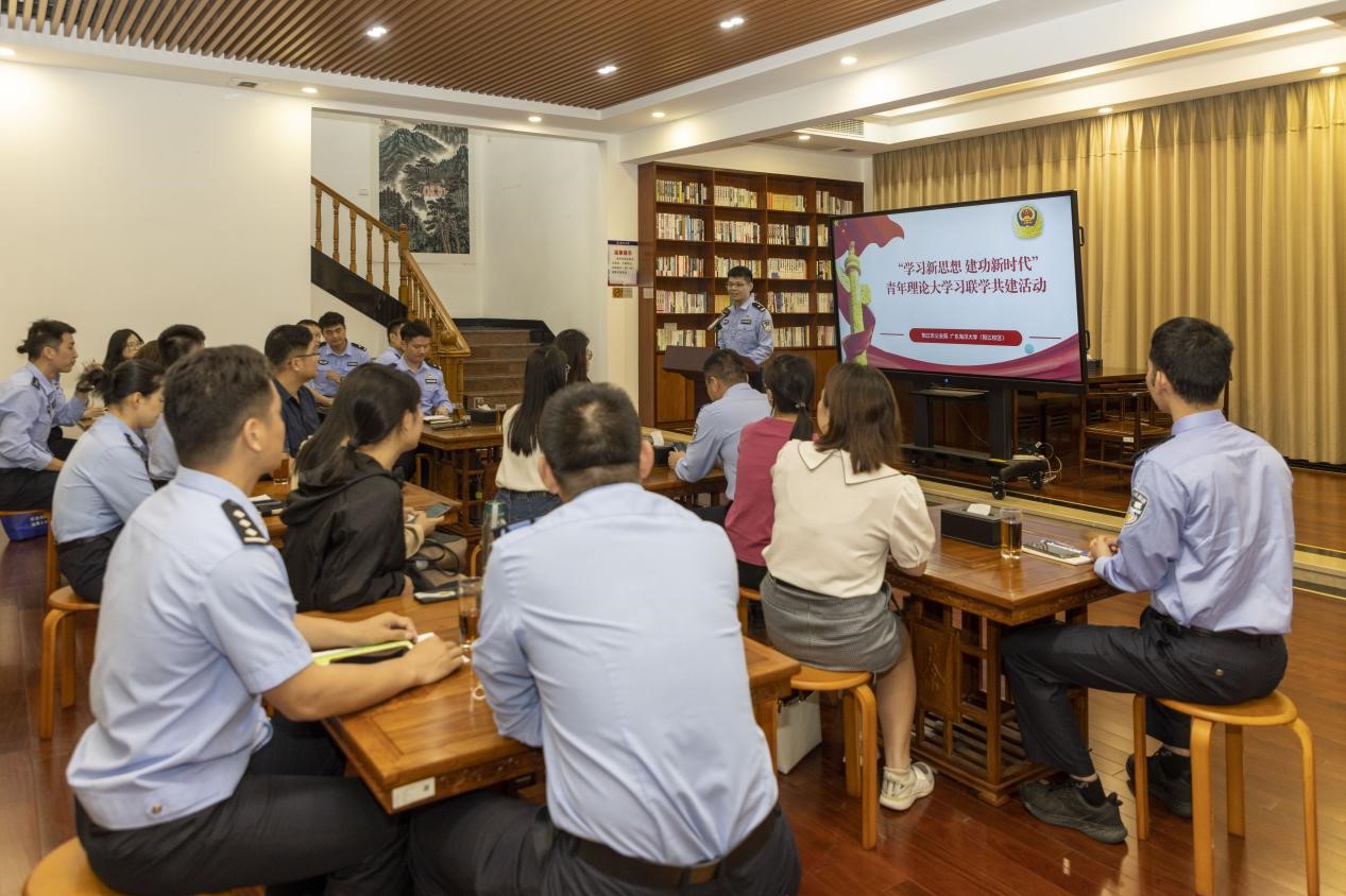4月26日下午,校区管委会委员、工会主席、组织人事部负责人李鹏虹率青年教师代表一行应邀到阳江市公安局开展主题教育青年交流学习活动。市公安局机关党委专职副书记莫科荣、直工科科长封玉宵、团委书记赵雷等领导携青年理论学习小组民警代表参加了活动。