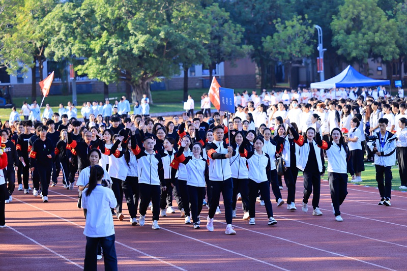 学校党委常委、副校长,阳江校区党委书记、管理办公室主任、第三届田径运动会组委会主任周昌仕出席运动会开幕式并致辞。校区党委副书记、组委会副主任丁永成主持开幕式。在全体师生的共同见证下,国旗队、校旗队、红旗队、裁判员、运动员们身着整齐的队服,精神抖擞地步入会场。伴随着激昂的进行曲,各方阵依次喊着响亮的口号通过主席台,展现了各自的独特风采。