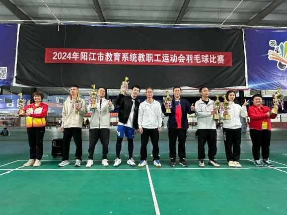 12月13日,2024年阳江市教育系统教职工运动会羽毛球团体赛在阳东羽星球馆落幕。在校区工会的大力支持与专业指导下,校区教职工于甲组赛事中奋勇拼搏,成功斩获全市第五名的佳绩。12月27日至28日,该运动会的教职工乒乓球团体赛在阳东博雅中学举行,校区代表队首次参赛就夺得团体赛全市第二名,韩昆阳获得男子单打第二名,李中获得女子单打第二名。此外,校区教职工代表在其他项目也取得不错的成绩。