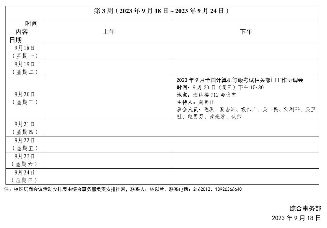 2023~2024学年第一学期第3周会议活动安排表