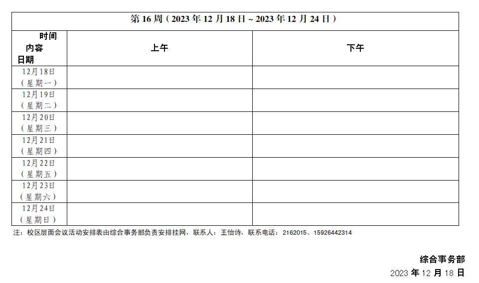 2023~2024学年第一学期第16周会议活动安排表