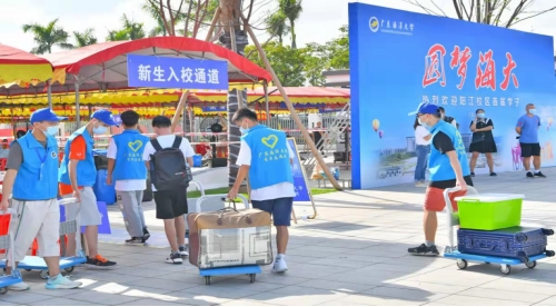 ◆2023年9月14日,阳江校区二期第一标段海德、海定、海安三栋学生公寓投入使用,1500余名新生顺利报到入住。