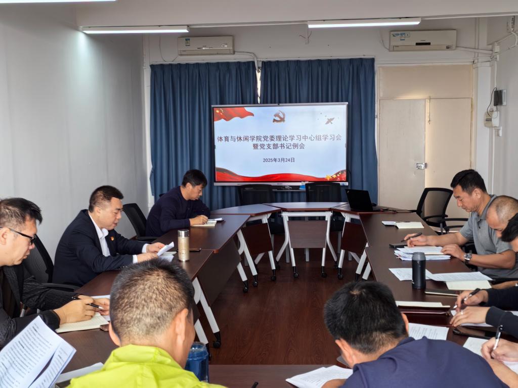 3月24日,体育与休闲学院在广学楼901会议室召开党委理论学习中心组学习会暨党支部书记例会,深入学习贯彻中央八项规定精神,学院领导班子成员、党委委员、党政办主任、专兼职组织员和各党支部书记参加会议,学院党委书记王明对主持会议。