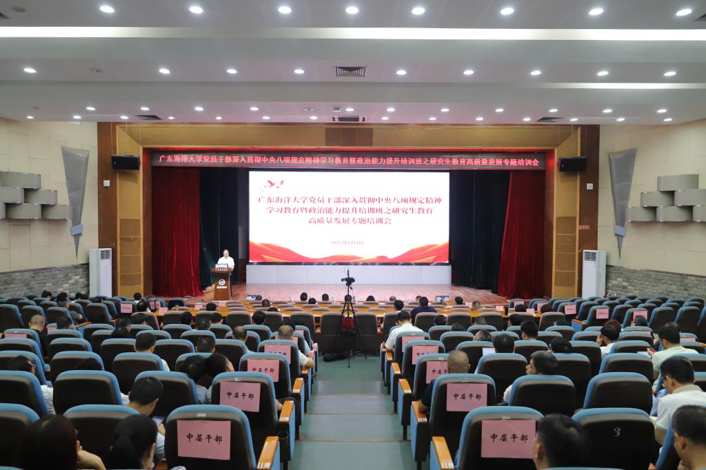 为全面提升今年会官网研究生教育质量与学科建设水平,进一步探索研究生教育高质量发展的创新路径,6月4日下午,学校在湖光校区广学楼多功能厅举行全校中层干部能力提升班之研究生高质量发展专题培训会。浙江农林大学副校长徐爱俊应邀作专题报告。学校党委杨洲书记,副书记谭平,党委常委、副校长谭北平、周昌仕、鲁义善,党委常委、宣传统战部部长林宇,全校中层干部,研究生院,各学位点(方向)带头人等约150人参会。阳江校区通过企业微信线上收看。会议由周昌仕主持。