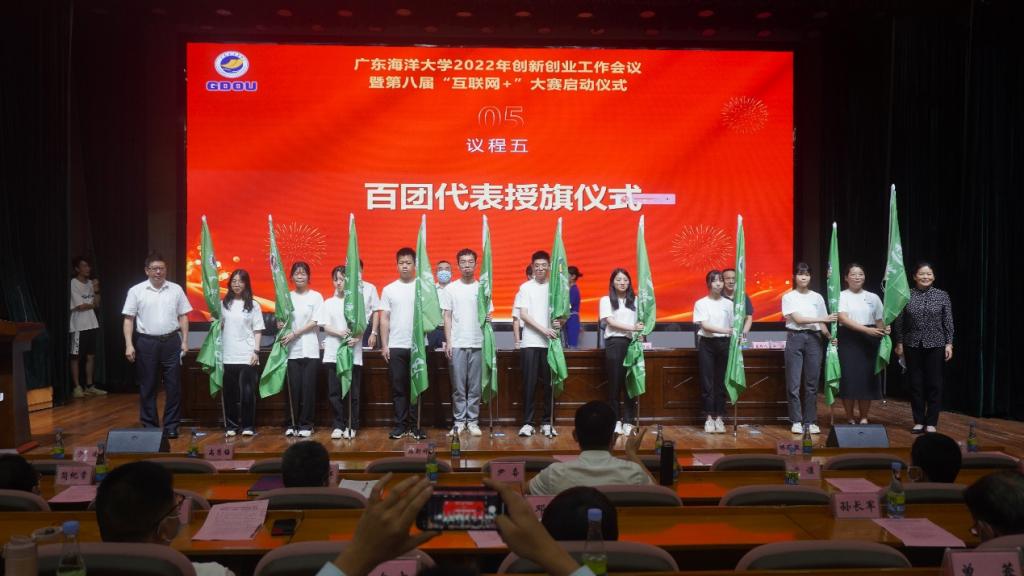 活动中,曹俊明为参加第八届“互联网+”大赛省赛的出征团队授旗,并勉励各团队珍惜机会、主动学习、学以致用,在比赛中再拓新思路、再现新形象、再上新台阶,以优异成绩迎接党的二十大胜利召开。林晓敏为7个校外创新创业基地授牌。高秀梅、谭北平共同为10个重点团队授旗。