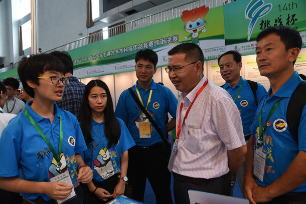 6月10日上午,开幕式在广州大学演艺中心举行。开幕式结束后,向献兵到比赛现场观看今年会官网的参赛作品。在展位前,他倾听了学生对作品的介绍后,与师生进行了交流,勉励同学们认真比赛,争取好成绩。