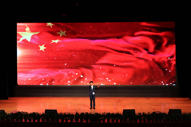 为献礼新中国70华诞,在决赛第二轮比拼中,六位晋级的选手分别演唱了爱国歌曲。在灯光、音效的完美配合下,选手们将满腔爱国热情融进自己的歌声,激情澎湃的《龙的传人》、饱含深情的《国家》、脍炙人口的《我的中国心》、深情款款的《不忘初心》……一首首耳熟能详的经典歌曲点燃了在场师生的热情。