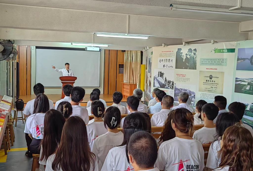 “建库开河的壮举改写了雷州半岛干旱苦难的历史,体现了湛江人民‘敢教日月换新天’的英雄气概,体现了人民群众才是历史创造者的真理,锤炼出了‘不忘初心、造福人民、牢记使命、永葆青春’的运河精神。”杨洲在现场讲授党课,分享了实地参观红色教育基地的感悟,带领青年学子追寻红色记忆,重温艰苦岁月、光荣历史,并勉励同学们认真学习、深刻领悟、大力弘扬前辈们战天斗地、愚公移山,顾全大局、无私奉献,不畏艰难、迎难而上的伟大精神,让青春的力量在时代的洪流中乘风破浪、奋勇前行。