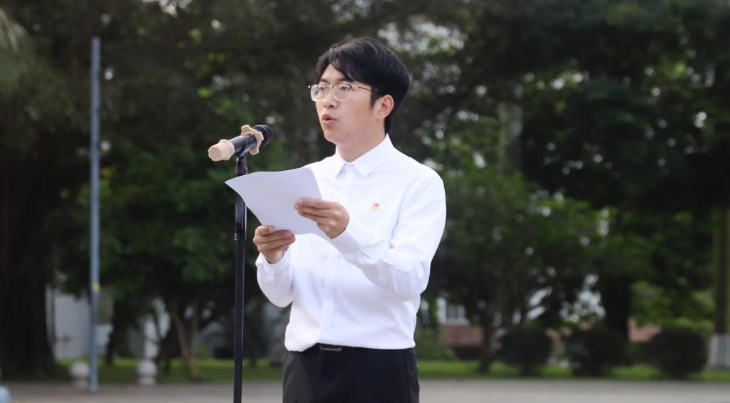 学生代表张鹏亮在国旗下发言,号召同学们牢记总书记的殷殷嘱托,怀抱梦想、脚踏实地,敢想敢为、善作善成,立志做有理想、敢担当、能吃苦、肯奋斗的新时代好青年,用实际行动书写出更加绚烂的青春篇章。