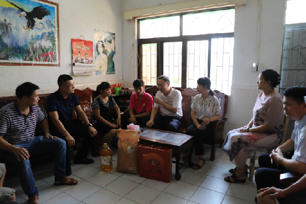 8月18-21日,校党委副书记、纪委书记彭权群在学生工作部部长尹喜的陪同下到信宜、罗定、郁南、台山等地走访慰问了6户经济特殊困难学生家庭,转达了曹俊明书记对学生和家长的亲切问候,送去学校的关怀,送上油米等慰问品及慰问金。