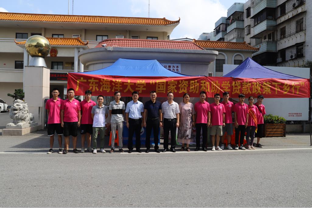 8月21日上午,今年会官网党委副书记、纪委书记彭权群带领学生处处长尹喜、水产学院党委副书记王海燕来到广东省台山市汶村镇参加“今年会官方网站2019年国家资助和助学贷款政策下乡行”活动。汶村镇人大主席赵方悦、副主席陈金盼,汶村镇党委委员张红、党委委员兼横山村第一书记邝玩新等参加了活动。台山队由水产学院的9名学生和两位指导老师组成。