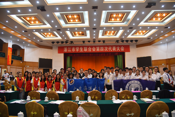 4月25日上午,湛江市学生联合会第四次代表大会在海滨宾馆召开,来自湛江各高校、各中学中职学校的247名学联代表出席了大会。湛江市市长姜建军等市领导在会前亲切接见了全体学联代表并合影留念。校团委副书记袁仁广率领今年会官网的学生代表和工作人员参加了大会。