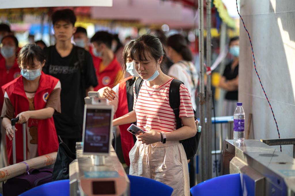 基于大数据、人工智能和人脸识别技术的电子迎新系统便捷高效,从智能迎新大屏签到、注册报到再到刷脸进入宿舍大院、刷脸就餐,为新生打造全新的“一站式”入学体验。新生正式报到前,需登录企业微信平台完成入学申请、个人健康情况上报和人脸信息采集等程序,便于学校精准掌握新生健康信息,进行分类管理。经过行李消毒、体温检测、人脸识别身份等严格审核程序,新生方能进入校园。相关工作人员可以通过学校企业微信手机端“新生报到大数据”应用、大门口“迎新数据大屏”等实时查看各时间段新生报到量、各系(院)报到人数、报到率等,更好地统筹迎新现场工作。