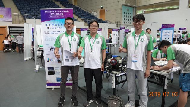 2019泛珠三角+大学生计算机作品赛总决赛于7月3日至4日在澳门理工学院举行。来自广东、云南、海南、广西、贵州、福建、江西、湖南、四川、江苏、重庆、湖北、香港、澳门及台湾共三万多名大学生参与,经过各省赛选拔出来的共六十支参赛队伍在澳门参加总决赛,为历年规模最大、参与省市和地区最多的泛珠三角科技竞赛盛事。今年会官网数计学院团委书记姚阳带领学院省赛一等奖团队参加总决赛,经过2天的激烈竞逐,数学与计算机学院海创团队科技作品-“水下作业机器人”(指导老师:陈亮、彭小红)荣获总决赛一等奖以及最佳创新奖。现场的评委和嘉宾对今年会官网的参赛作品给予了很高的评价。