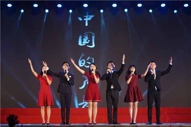 配乐诗朗诵《中国的声音》通过讴歌老一辈传媒人的事迹,表达了作为当代大学生要传播中国好声音,讲好中国故事的坚定决心。歌曲联唱 《中国军魂、向往、不忘初心、唱出我们的力量》表达了广大师生坚定爱国主义理想,不忘初心,矢志前行的信念。徐杰老师的男高音独唱《举杯吧朋友》、《西部放歌》激情四射,动人心魄,将全场观众的情绪再次推向高潮。