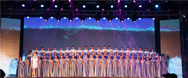 海之声合唱团《大海啊故乡》的大合唱,不同声部的和声仿佛海浪轻柔涌动,让观众感受到大海的温柔和浪漫。合唱《年轻的朋友来相会》表达了对新生的欢迎,调动起现场观众的情绪。
