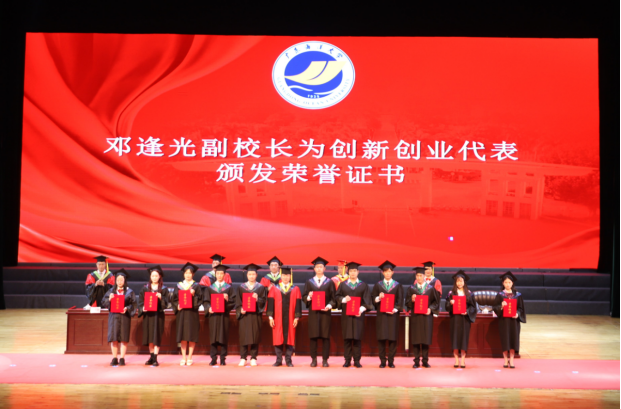 典礼上,学校党委书记曹俊明为2022届优秀毕业生代表颁奖,副校长刘东超宣读2022届优秀毕业生表彰决定,副校长高秀梅宣读2022届研究生学位授予情况,副校长宁凌宣读2022届本科生毕业情况和获得学士学位者名单。副校长刘东超、邓逢光,校党委常委、组织部长林宇分别为考研先进个人代表、创新创业代表、西部山区志愿者代表和优秀志愿者代表颁发荣誉证书。