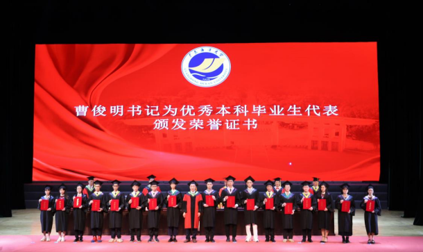 党委书记曹俊明为优秀毕业生代表颁奖