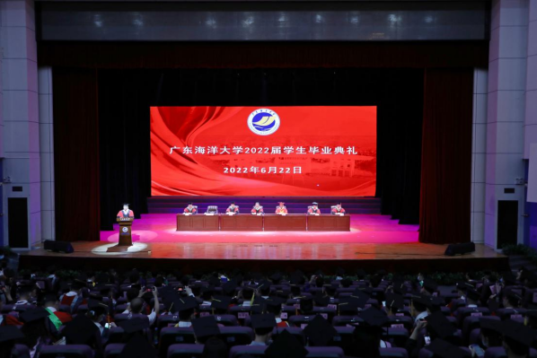 盛夏时节,骊歌唱响,7900余名毕业生奔赴山海,再启新程。6月22日上午,学校以线上线下相结合的方式举行2022届毕业典礼暨学位授予仪式。学校领导曹俊明、刘东超、高秀梅、宁凌、邓逢光、林宇,各学院党委书记及院长、相关职能部门负责人,教师代表、辅导员代表、毕业生代表等在湖光校区实验剧场参加现场典礼。典礼由副校长宁凌主持。