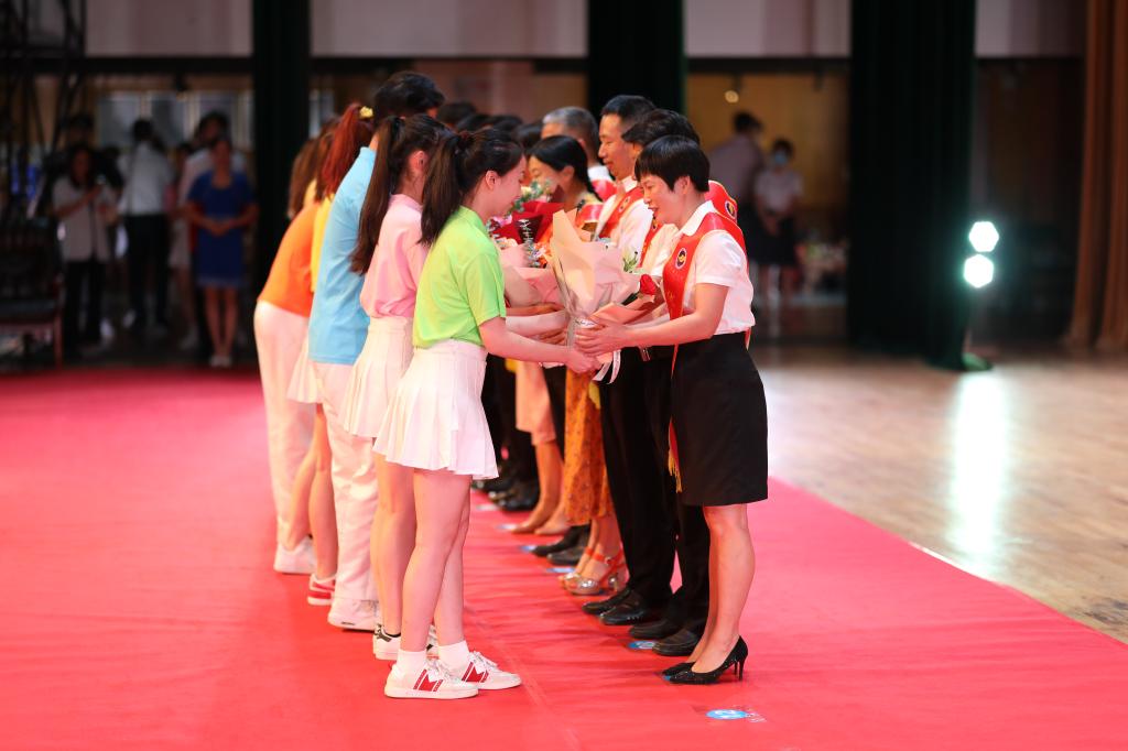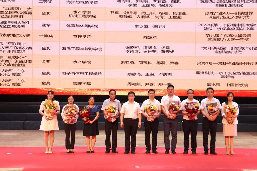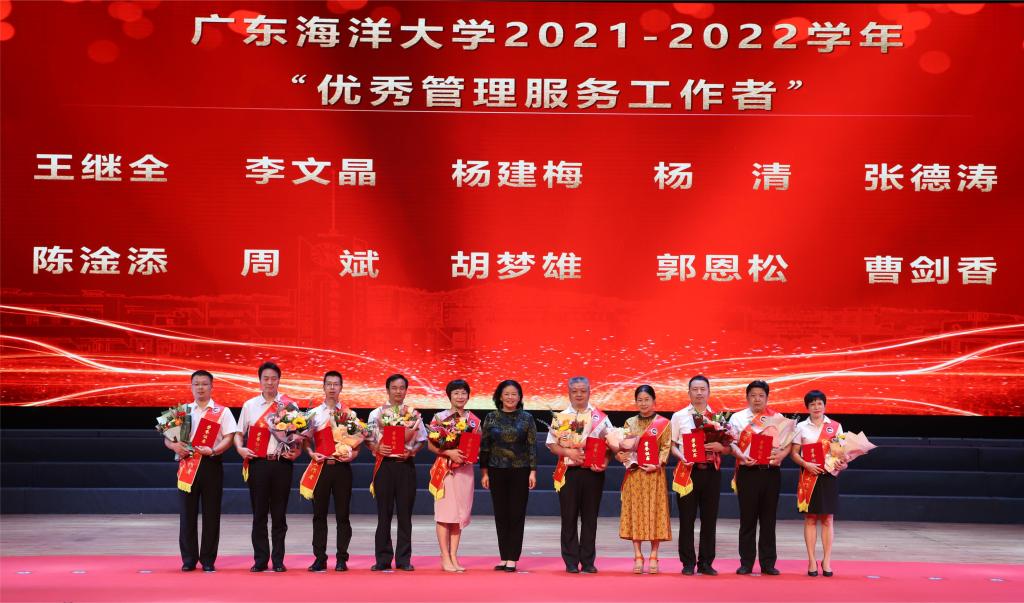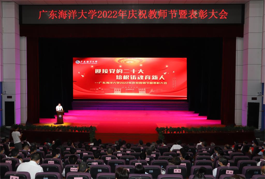 学校领导杨洲、彭权群、林晓敏、刘东超、高秀梅、谭北平、宁凌、邓逢光、林宇出席会议。校党委书记杨洲为获得省部级以上荣誉教师代表授花并在大会上讲话。党委副书记、纪委书记彭权群宣读表彰名单。副校长谭北平主持大会。受表彰教师、各单位(部门)主要领导,退休教师代表、在职教龄满30周年以上教师代表、新入职教师代表、学生代表共260余人在中歌艺术学院实验剧场现场参加了大会。湖光、海滨、霞山、阳江校区共4200余人次师生员工通过线上平台收看了大会直播。