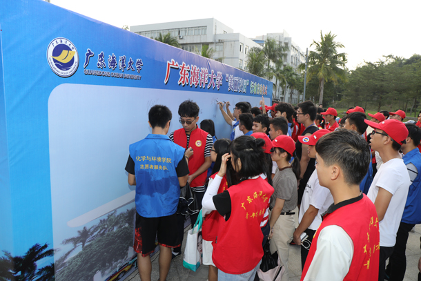 仪式结束后,参加启动仪式全体领导、老师和同学们在签名墙上签名留念。同学们在团委学生会的组织下分成17个队伍开展美丽校园行动。