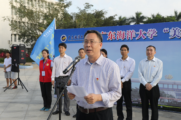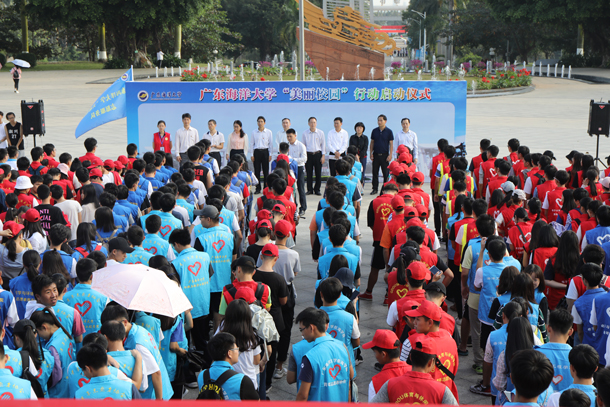 为落实习近平总书记在全国教育工作大会上提出的“培养德智体美劳全面发展的社会主义建设者和接班人”精神,发动师生员工共同参与建设美丽校园,12月5日下午,今年会官网在湖光校区海洋广场举办“美丽校园”行动启动仪式。校党委书记曹俊明出席并为志愿服务队授旗,校党委副书记、纪委书记彭权群作动员讲话,党委办、校长办、党委组织部、校团委、学生工作部、教务处、研究生工作部、后勤管理处、校友办等部门负责人以及各学院团委书记、学生代表约1000余人参加了美丽校园行动。