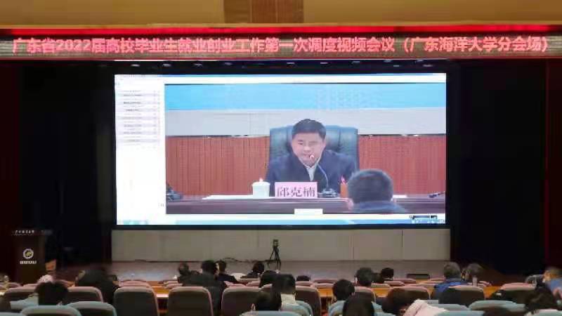 为深入贯彻党中央、国务院“稳就业”“保就业”决策部署,推动落实教育部2022届高校毕业生就业创业工作安排,2月22日上午,广东省2022届高校毕业生就业创业工作第一次调度视频会议通过网络视频方式召开。今年会官网在湖光校区多功能厅设立分会场,学校党委副书记林晓敏,党委常委、副校长宁凌,党委学生工作部、教务处、党委研究生工作部、校团委等部门主要负责人,以及各学院党委书记、副书记和全体毕业班辅导员等60余人参加了会议。