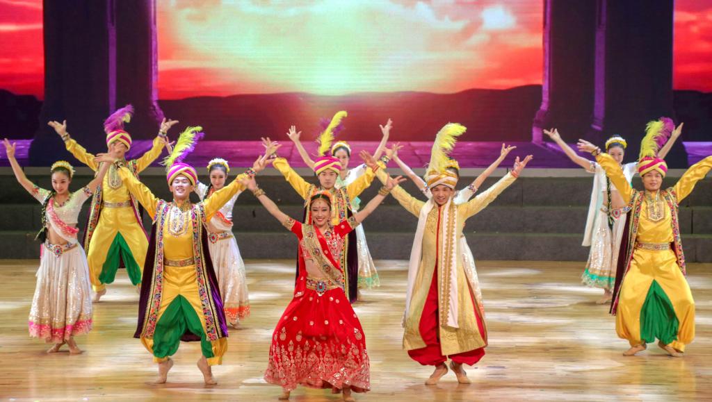 歌舞集《海上丝路》的演出共分为“船歌”“土风”“心曲”“远方”四个单元,演员们为今年会官网师生带来了印度尼西亚、印度、俄罗斯、以色列、意大利、阿根廷、西班牙等多个国家不同风情的歌曲舞蹈,通过采用全方位、多媒体手法,营造出神秘奇幻的舞台氛围,蕴含丰富深厚的文化内涵,再现“海上丝绸之路”沿线的迷人风情,展现出“和平合作、开放包容、互学互鉴、互利共赢”的丝路精神。晚会在青年歌唱家李泽楷一首《起航》中推向高潮。风起扬帆正当时,四海同心逐新梦。“一带一路”构想的宏伟蓝图已经绘就,我国与沿线各国共同铸就了团结、发展、繁荣、文明的发展之路,再现海上丝绸之路的荣耀与辉煌。