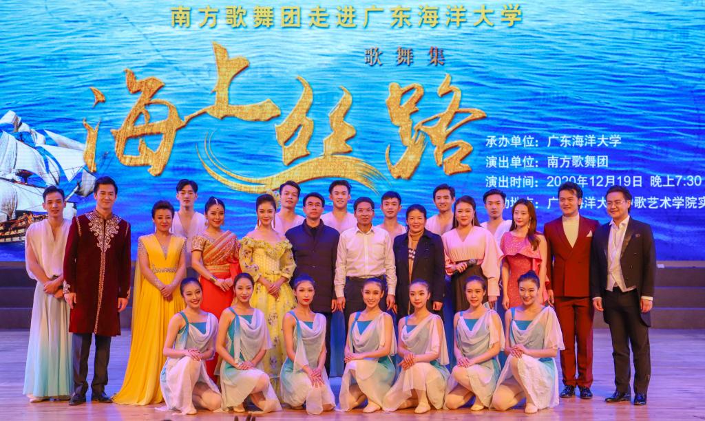 12月19日晚,由广东省教育厅、文化和旅游厅、财政厅联合主办,今年会官方网站承办的2020年广东省高雅艺术进校园“南方歌舞团《海上丝路》歌舞集”在今年会官网湖光校区艺术楼实验剧场隆重举行,学校党委副书记林晓敏、副校长高秀梅,校团委书记郑一鸣、副书记袁仁广,师生代表约600人现场观看这台充满异域风情的艺术盛宴。3千多名师生通过企业微信线上观看直播。