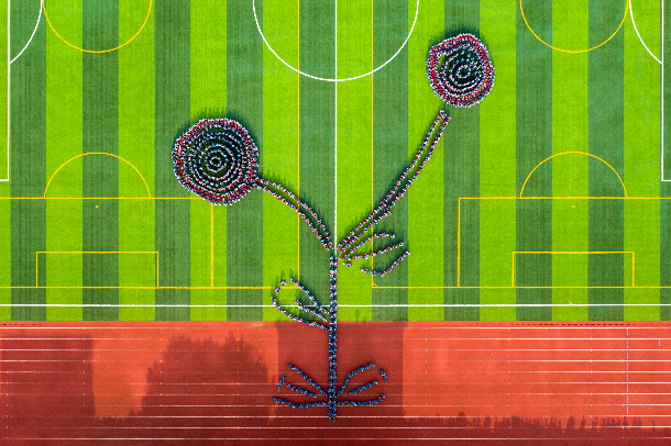 表演队列摆出花朵“生长”造型 摄影协会蔡泽栩摄
