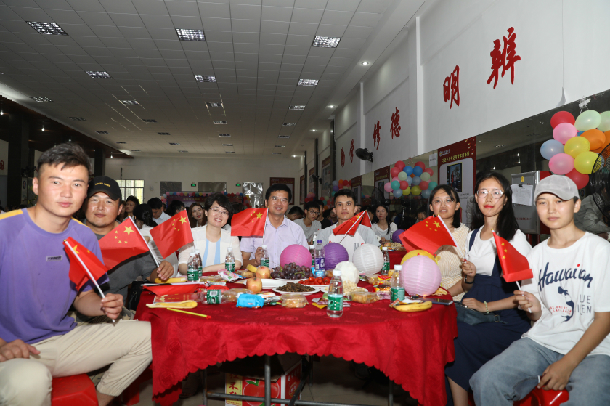 师生们手提五颜六色的小灯笼入场,在“深情告白祖国”的表白墙上写下对祖国的美好祝愿。圆桌上摆满月饼、水果和各种小零食,大家围坐在一起闲话家常、畅谈学习生活,现场洋溢着欢乐祥和的节日氛围。