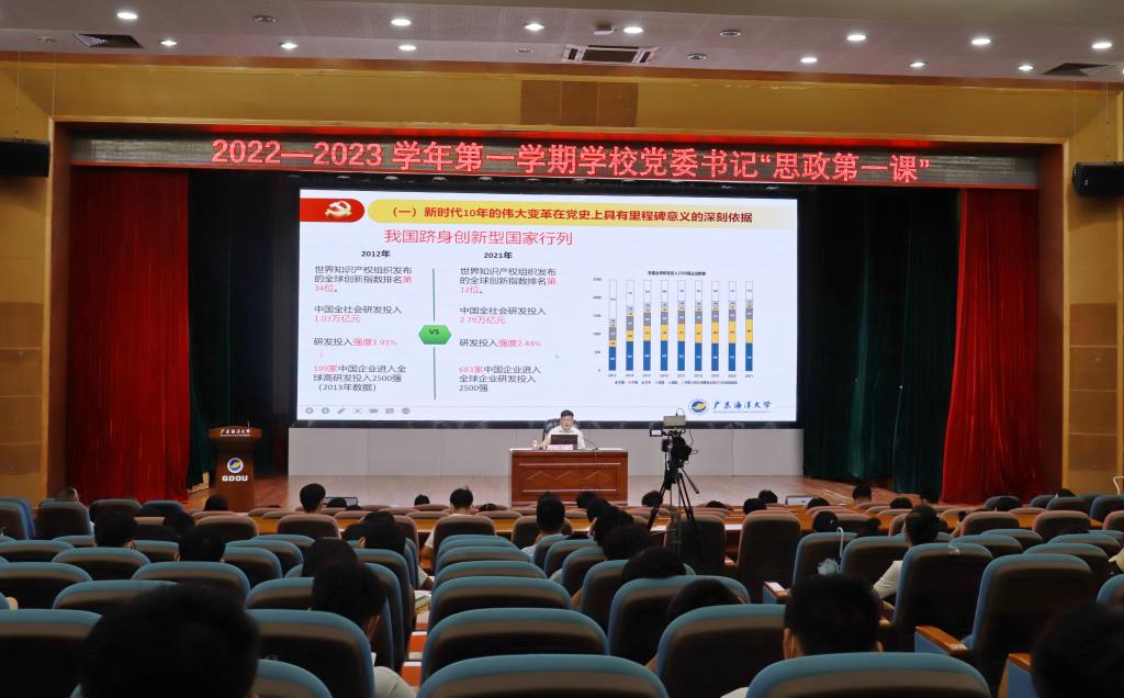 9月21日下午,学校党委书记杨洲以《不负青春韶华 勇担青年使命》为题,在湖光校区广学楼多功能厅为学生讲授2022年秋季学期“思政第一课”,勉励同学们紧跟党走、砥砺奋进,增强做中国人的志气、骨气、底气,以奉献担当书写时代华章,以昂扬姿态迎接党的二十大胜利召开。共有200余名学生代表现场参加学习,近2000人次学生在线听讲。