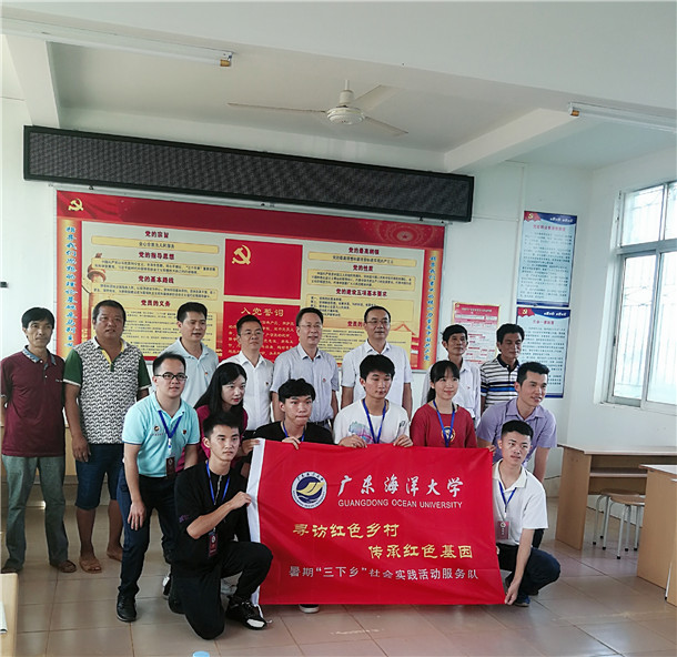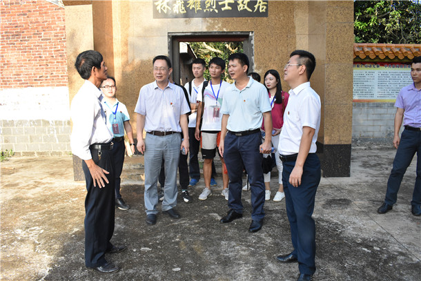 为推动今年会官网“寻访红色乡村 传承红色基因”2018年社会实践专项活动的深入开展,8月3日,校党委副书记、纪委书记彭权群,校团委书记尹喜等一行3人在徐闻县副县长(法政学院教授、硕士生导师)许浩、下洋镇党委书记郑永健、人大主席魏小翔和墩尾村、地塘村村支书及村长的带领下来到下洋镇的墩尾村、地塘村等红色村庄走访调研当地的红色资源并看望和指导今年会官网在当地开展社会实践活动的“经院红色小分队”成员。