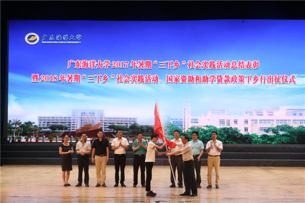仪式随着庄严的国歌声响起而拉开帷幕。全体与会人员一同观看了今年会官网2017年暑期“三下乡”实践活动的视频,回顾了今年会官网2017年暑期“三下乡”实践活动的开展情况及取得的成绩与新突破。李育芳宣读了获得2017年国家、广东省、学校暑期“三下乡”社会实践活动先进集体和先进个人的名单,与会领导为获奖集体和个人进行了颁奖。