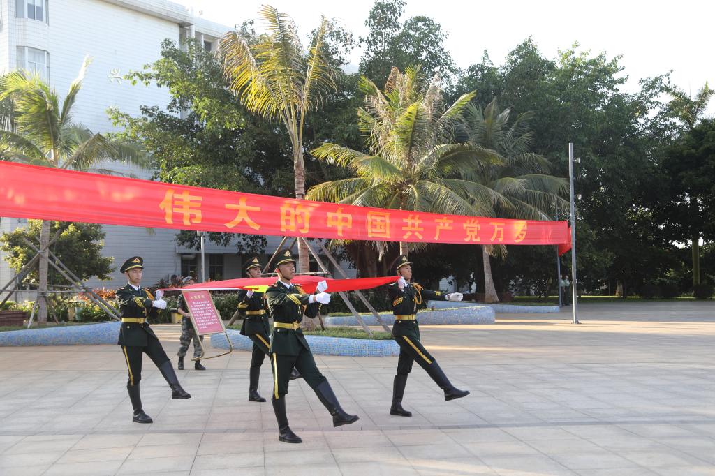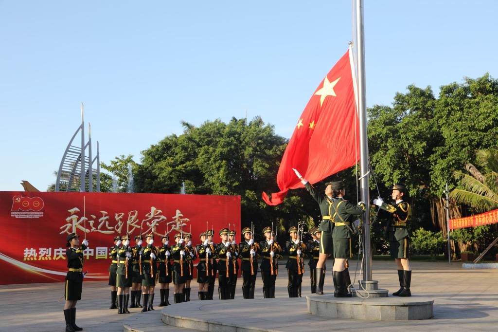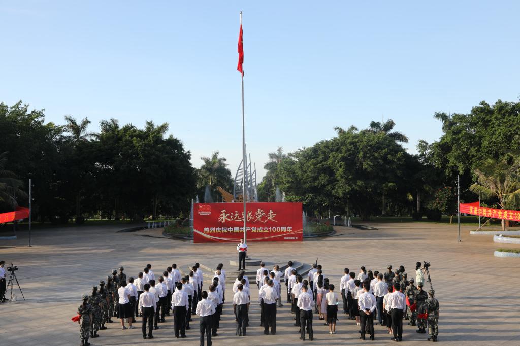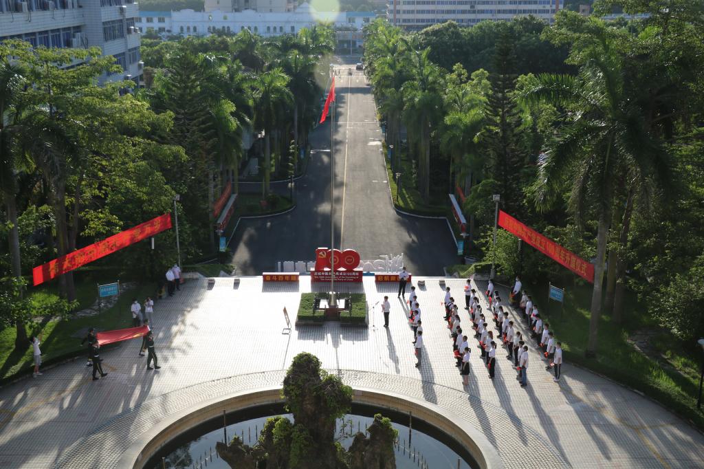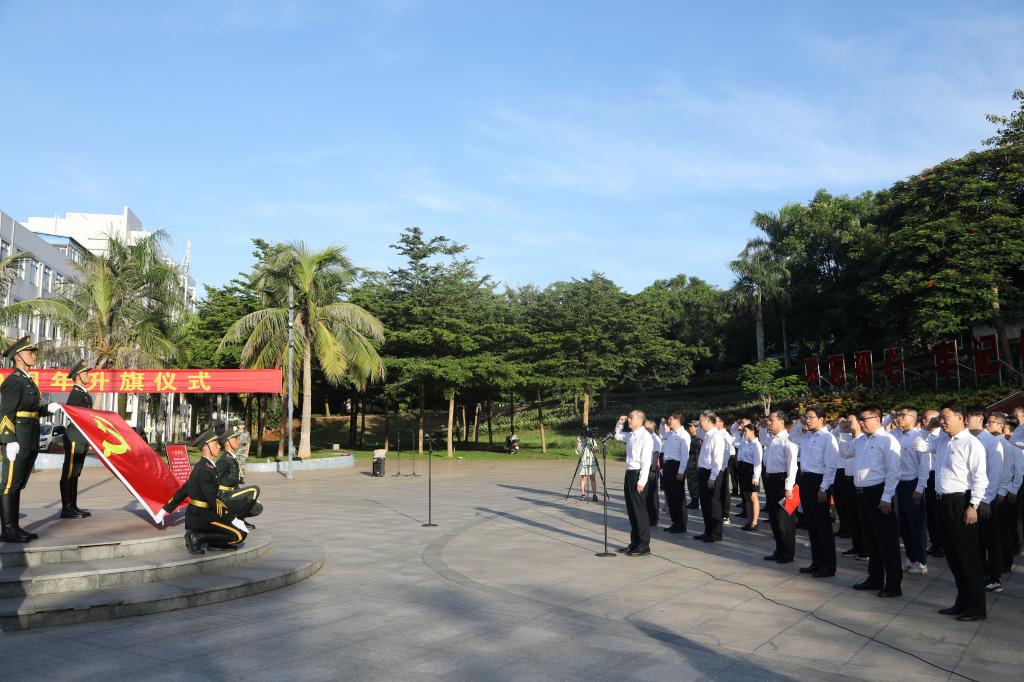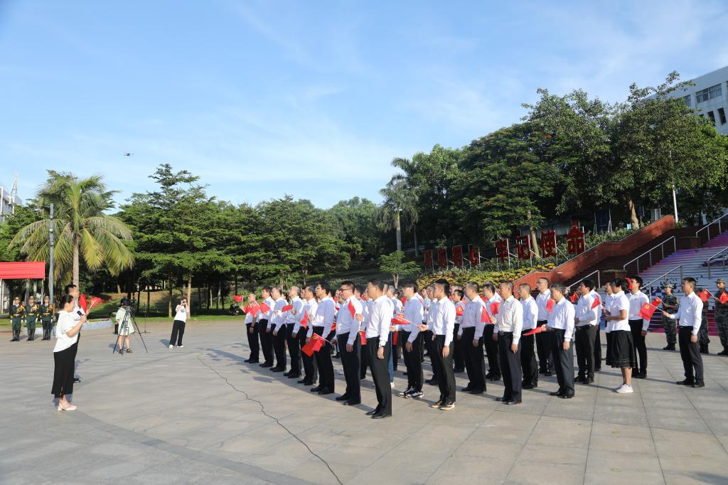 为庆祝中国共产党成立100周年,激励全校党员传承红色基因,赓续优良传统,汇聚奋进新时代、新征程的强大力量,7月1日清晨,今年会官网分别在湖光校区海洋广场、海滨校区共青广场隆重举行庆祝中国共产党成立100周年“七一”升国旗活动。校领导曹俊明、彭权群、林晓敏、刘东超、谭北平、宁凌、林宇出席活动。校党委书记曹俊明作了讲话,学校相关领导主持活动。校党委委员、纪委委员,各二级党组织书记、部分职能部门负责人、党员师生代表等现场参加活动。学校师生近1.1万人次通过企业微信平台在线参加升旗仪式。