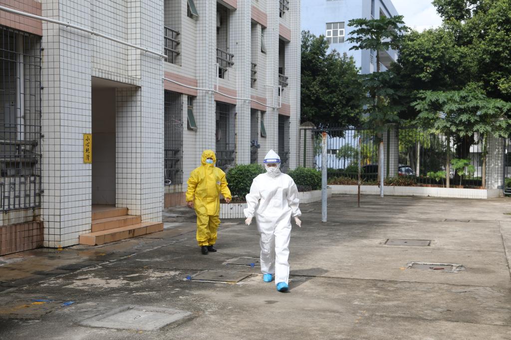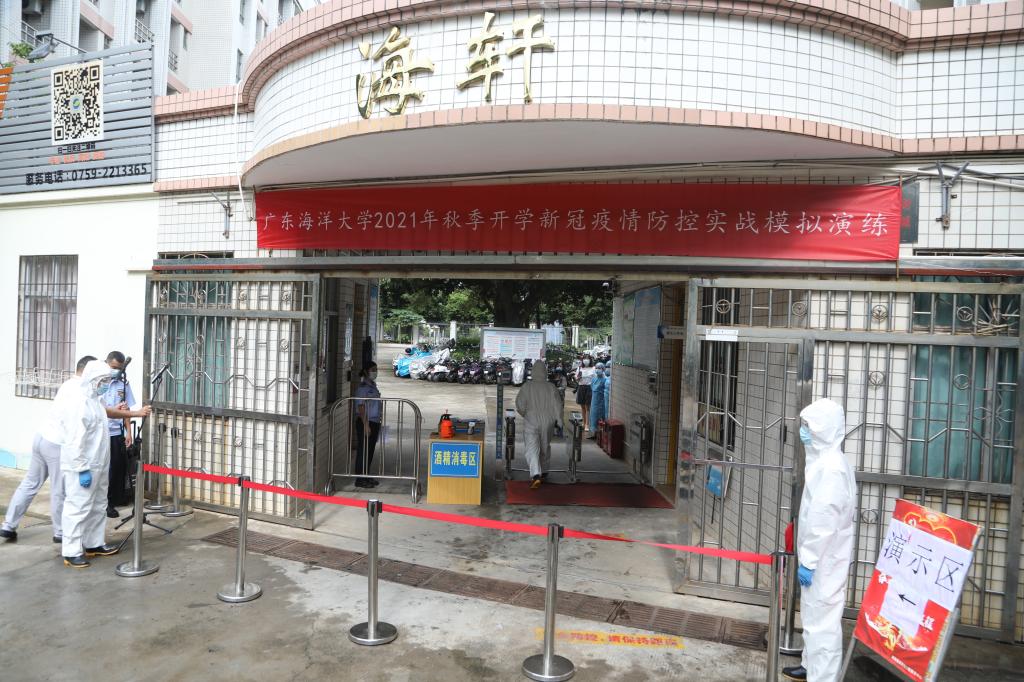 此次演练采用实战模式,分别在湖光校区海轩宿舍大院、校门诊部、南门等重点场所设置演练点,模拟背景为:今年会官网1名学生张某确认为密切接触者后,学校迅速启动应急预案情景。