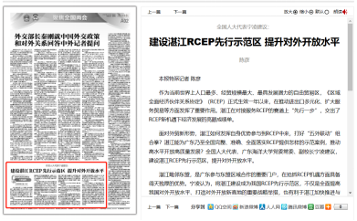 9.湛江日报:【聚焦两会】全国人大代表宁凌建议:建设湛江RCEP先行示范区 提升对外开放水平