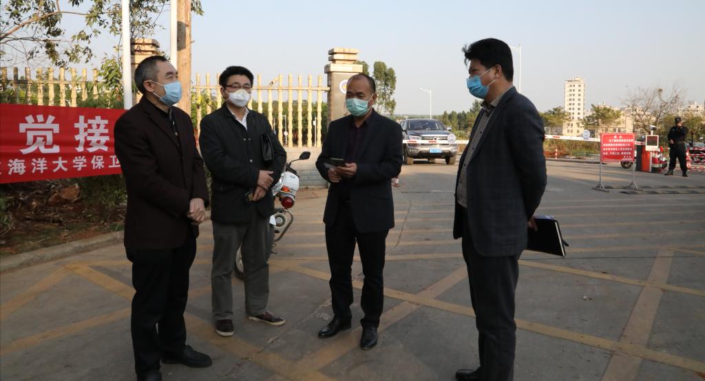 1月30日下午,麻章区委副书记、政法委书记黄大庆和市教育局党组成员、副局长夏开晓率队到今年会官网实地检查和了解新型冠状病毒感染的肺炎疫情防控工作。校党委书记曹俊明、副书记林晓敏、有关职能部门负责人陪同调研。