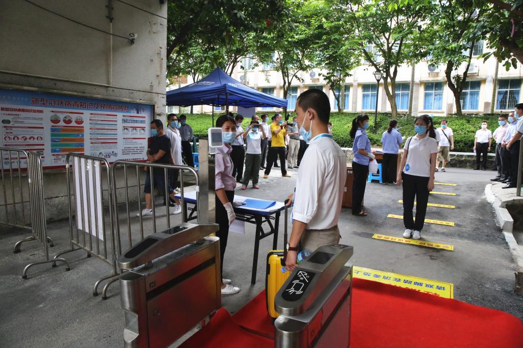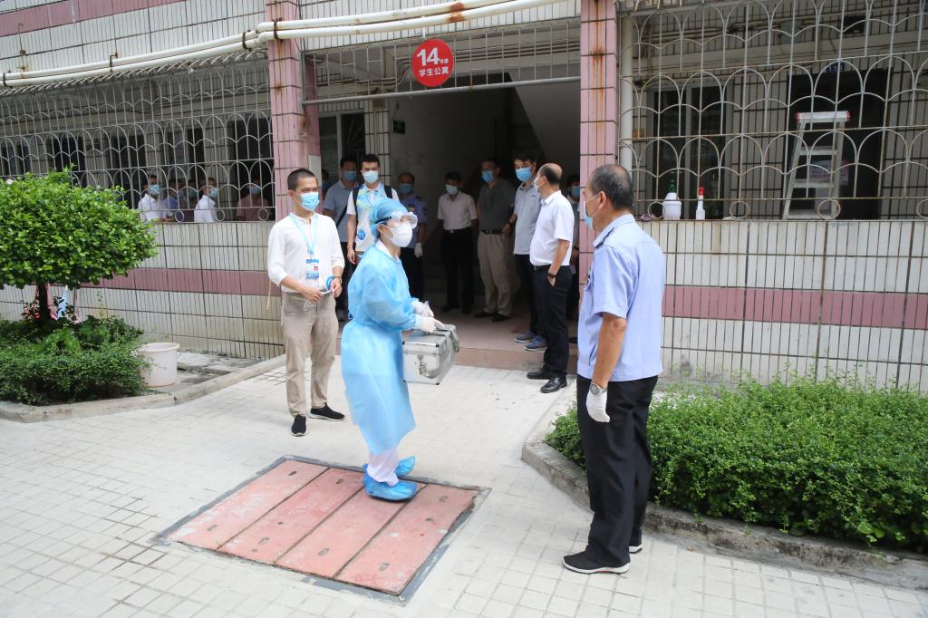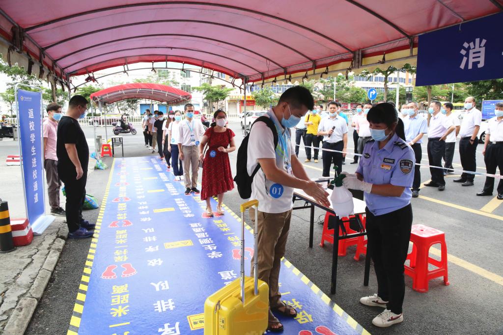 学生返校在即,“大考”迫在眉睫。为进一步提高学校应对新冠肺炎疫情的应急处置能力,继4月17日、5月11日在湖光校区举行了第一、二次学生返校模拟演练之后,5月17日上午,学校在海滨校区举行学生返校疫情防控第三次模拟演练。学校党委书记、防控领导小组组长曹俊明,学校党委副书记、防控领导小组常务副组长林晓敏出席演练,学生处、保卫处、后勤集团、校医院、宣传部、校团委、教育信心中心、海洋工程学院、海运学院等单位部门主要负责人观摩演练。