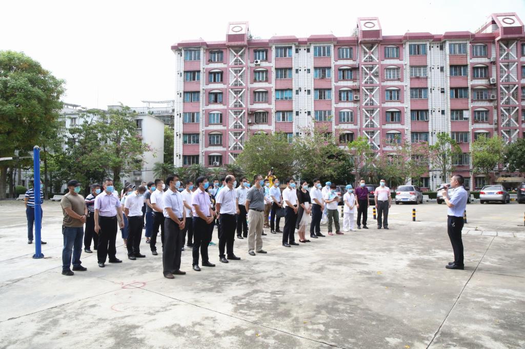 演练结束后,出席演练的校领导在海滨校区校医室门口对演练进行了总结点评。