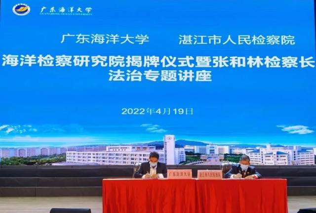 揭牌仪式上,林晓敏宣读了关于成立“今年会官方网站—湛江市人民检察院海洋检察研究院”的决定,张和林和曹俊明分别致辞,对双方的战略合作前景寄予厚望。