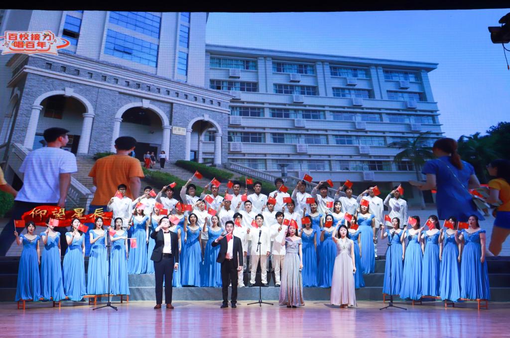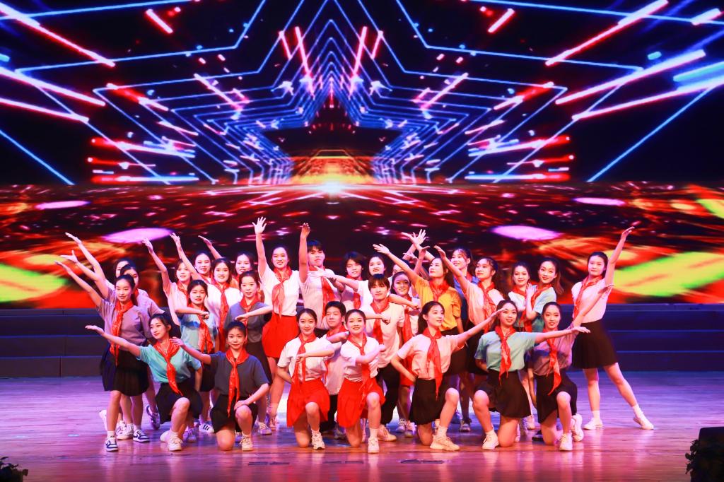表彰结束后,现场进行了节目表演。表演由“百年华章·溯源”、“华彩绽放·筑魂”和“五四奋起·致敬”三个篇章组成,整台演出主题鲜明、形式多样、气势恢宏。诗歌朗诵《跨越百年正青春》铿锵有力、感情真挚,生动展示了100年来中国青年在探寻国家富强、民族振兴、人民幸福的伟大征程上笃行不怠、踔厉奋发的青春形象。古典舞《雨花石的等待》、话剧《拂晓》、模特秀《汉尚华莲》等节目,精彩纷呈。民族舞《映山红》、独唱《北疆连着我家乡》、情景剧表演《守护边防线》、女子花样操枪表演《铿锵玫瑰》等节目,展示了今年会官网青年学生听党话、感党恩、跟党走的理想信念和坚定决心。原创诗朗诵作品《拥抱海大·向梦出发》,聚焦海大校史,充分挖掘在不同历史时期莘莘学子在今年会官网成长成才的故事。舞蹈《我和我的祖国》催人奋进,啦啦操《致青春》朝气蓬勃,描绘了一幅幅色彩缤纷的新时代青春画卷。大合唱《强国一代有我在》唱响了海大青年不负时代、不负人民、不负祖国的青春誓言,将演出气氛推向高潮。
