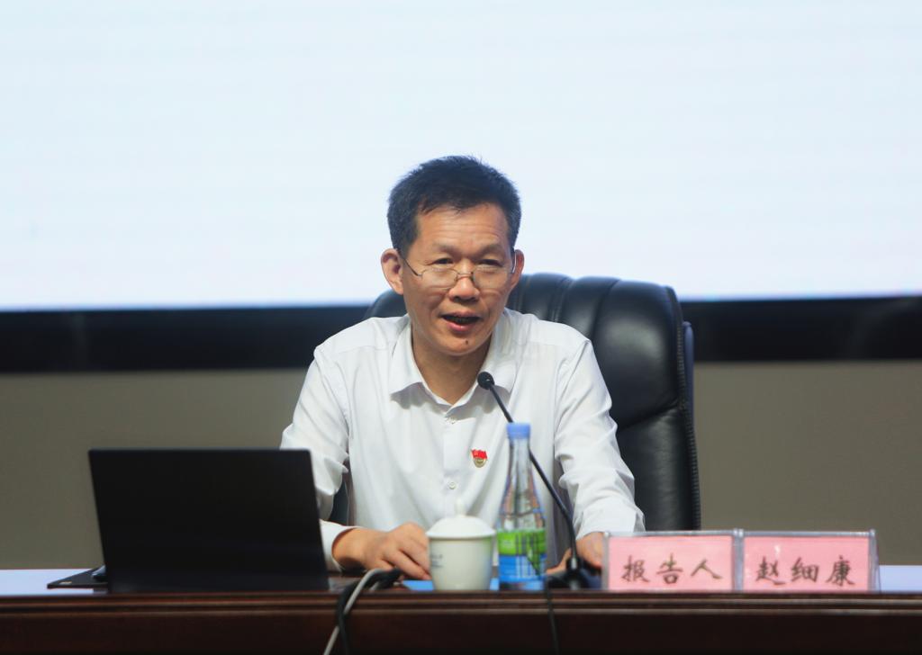 在题为《新时代中国共产党人坚持和发展中国特色社会主义的最新理论结晶》的报告中,赵细康系统介绍了《习近平谈治国理政》第一、二、三卷的出版背景和各卷内容的逻辑关系,全面梳理了第三卷的主要内容和专题设置特点,指出了第三卷出版发行的重要意义,提出的具有原创性、时代性、指导性的重大思想观点,并联系习近平总书记的成长历程,结合自己的学习体会,重点阐释了新思想孕育、形成与发展的历史过程。宣讲报告材料翔实、深入浅出,既有学术的高度、理论的深度,也有情感的温度,生动而富有感染力。