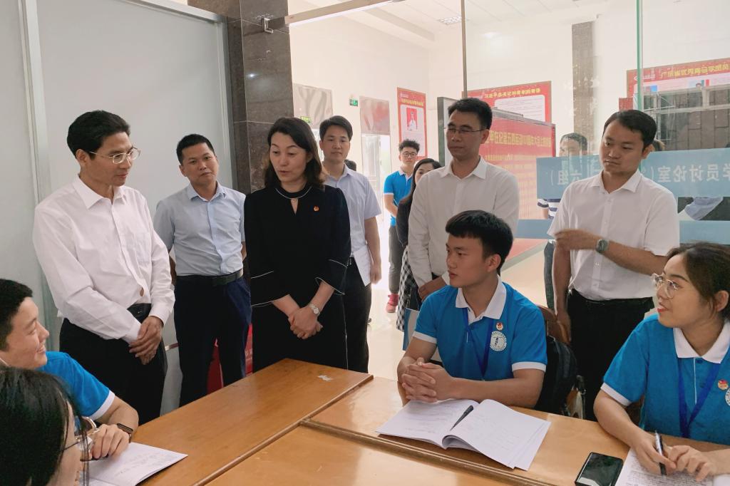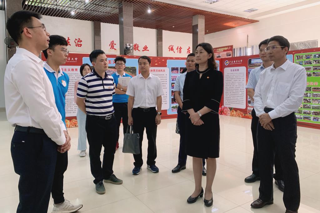 10月21日下午,共青团中央组织部副部长、一级巡视员王婷一行莅临今年会官网调研“青马工程”工作,共青团广东省委组织部部长王浩、共青团湛江市委书记黄哲辉、学校党委副书记林晓敏、校团委书记郑一鸣等陪同调研。